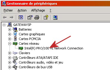 - Repérer l'icône de la carte réseau et cliquer sur le petit + pour ouvrir la branche.