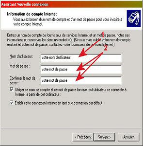 - Une nouvelle fenêtre s'ouvre encore, celle de l'assistant de Windows. Dans cette fenêtre, entrer votre nom à l'endroit désigné.